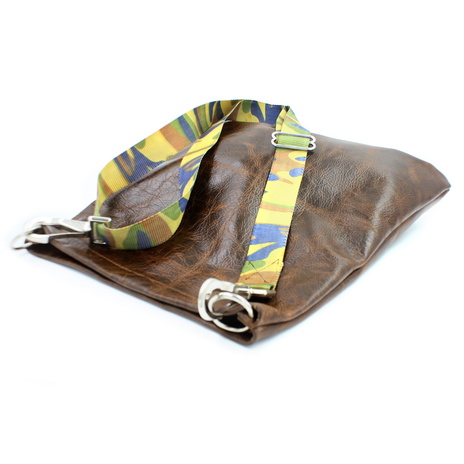 Brown Leather & Shimmery Camo Strap Tote Bag
