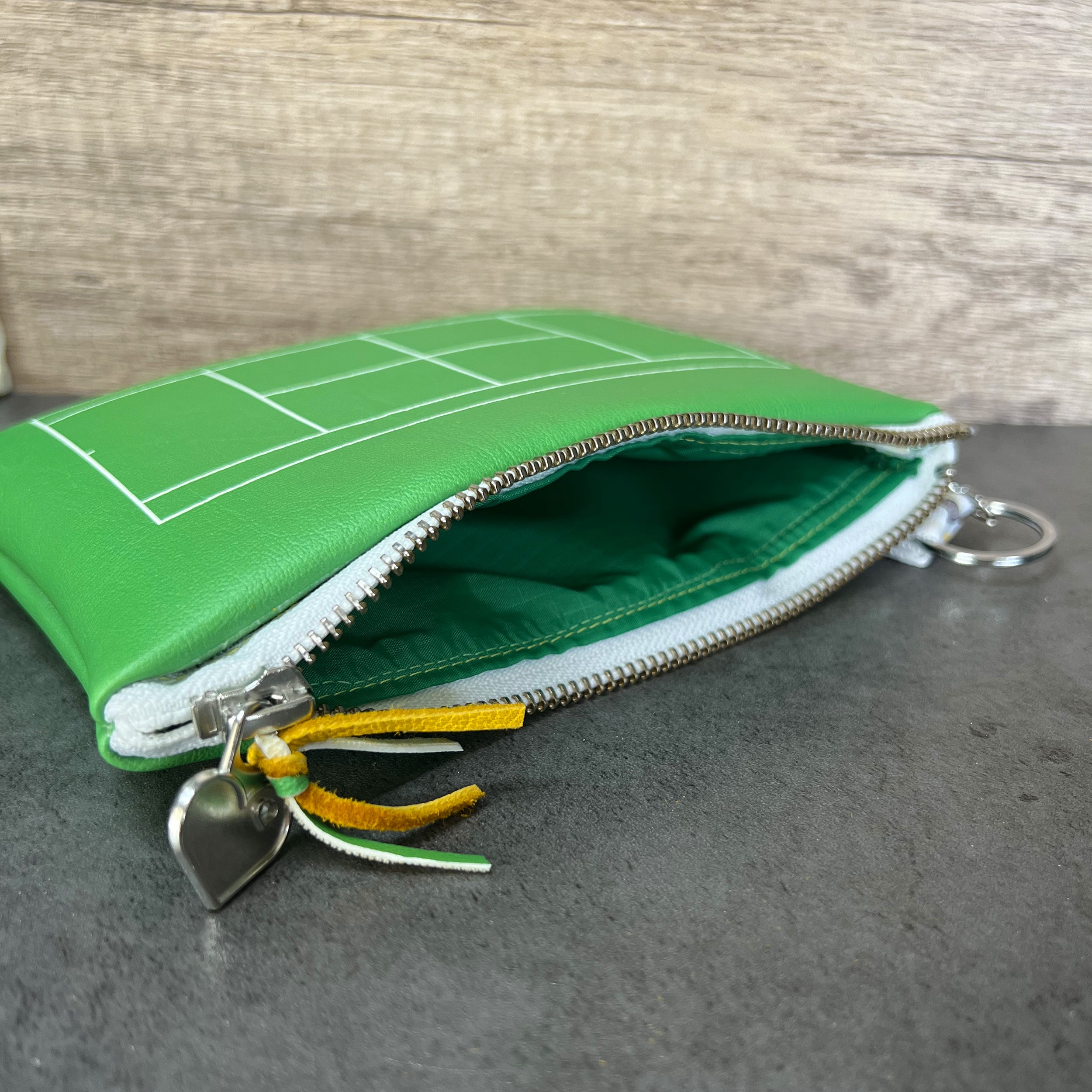 $75.00 USD$0.00 USDAvailable: In stockLabor of LOVE Tennis Clutch Wristlet. Tennis court design on the green Vegan leather used to make this bag was 100% designed by me and the material made per my specifications. Fully-lined with an interior green nylon and finished off...