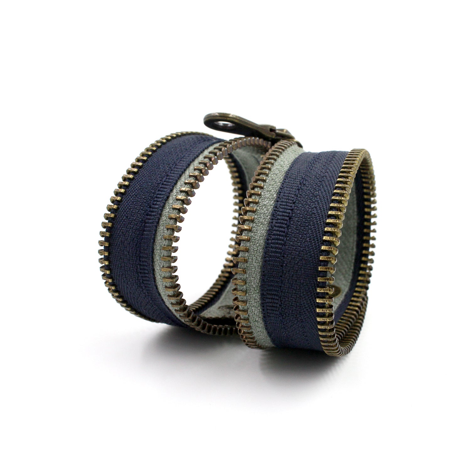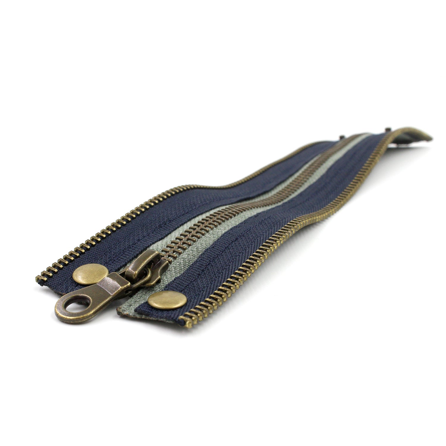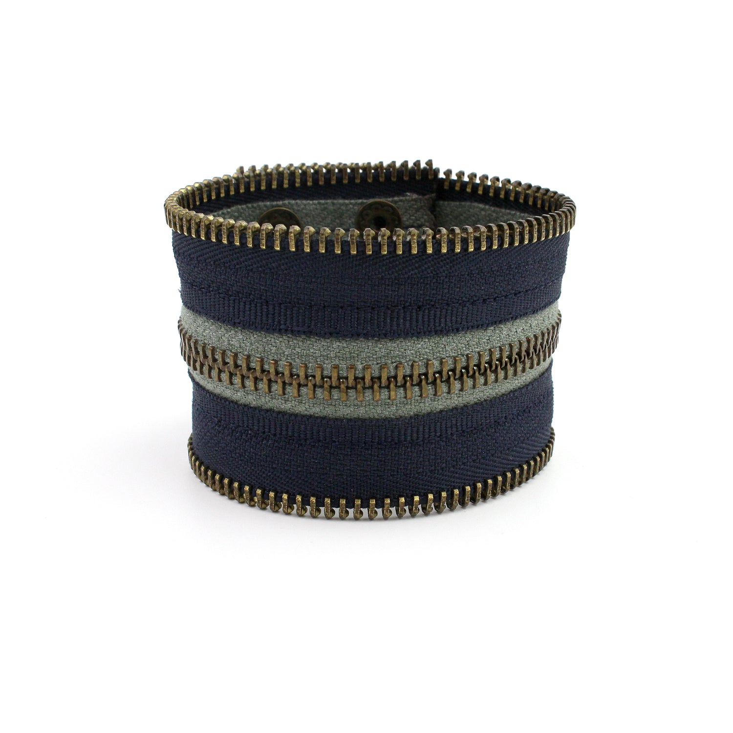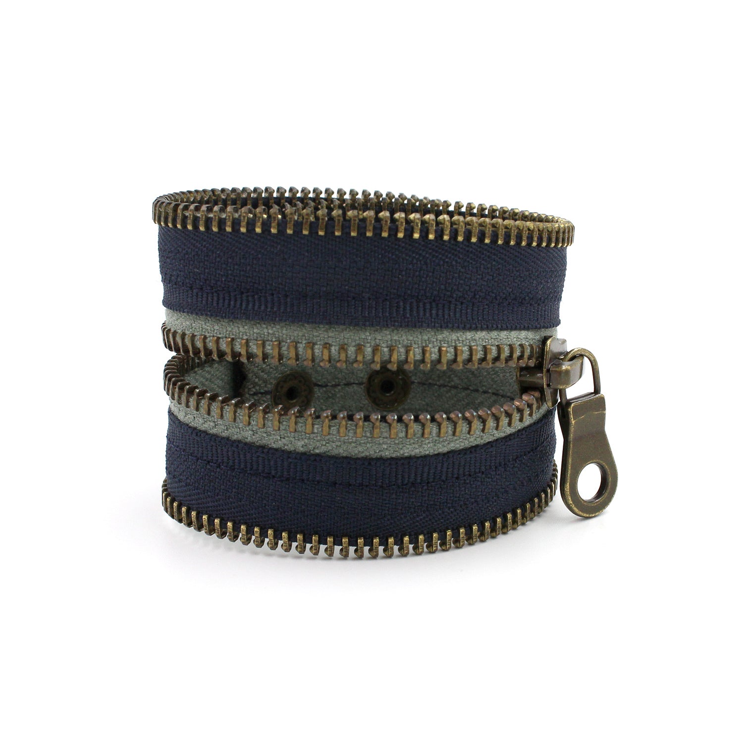 $20.00 USD$0.00 USDAvailable: Out Of Stock :-(Super soft moss green insides gives this bracelet a cool and comfortable feel. Moss green super soft inner zipper with antique gold teeth. Navy blue outer zipper with antique gold teeth. Navy topstitch. Antique gold snaps. Antique gold zipper pull. Bracelet width: 1.75" Size: Adjustable 2 ways - 7.25"...
