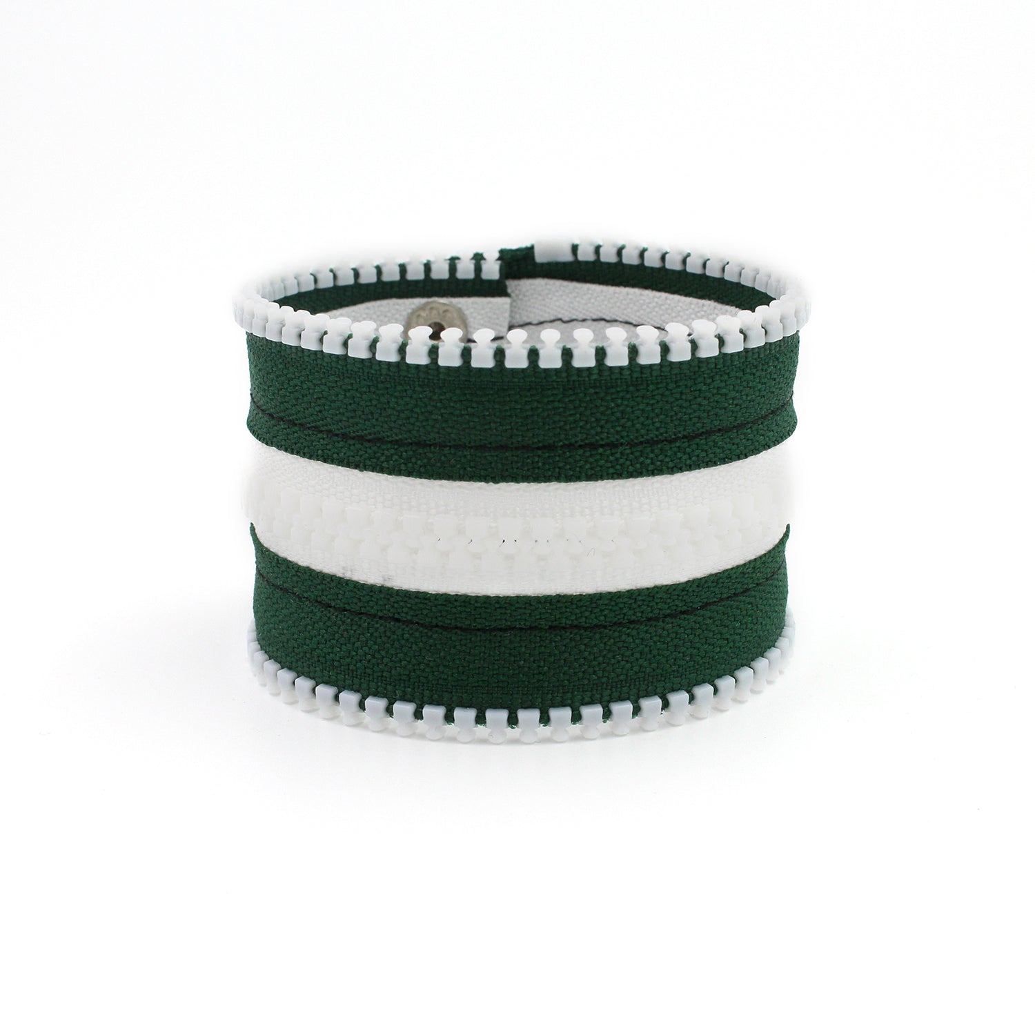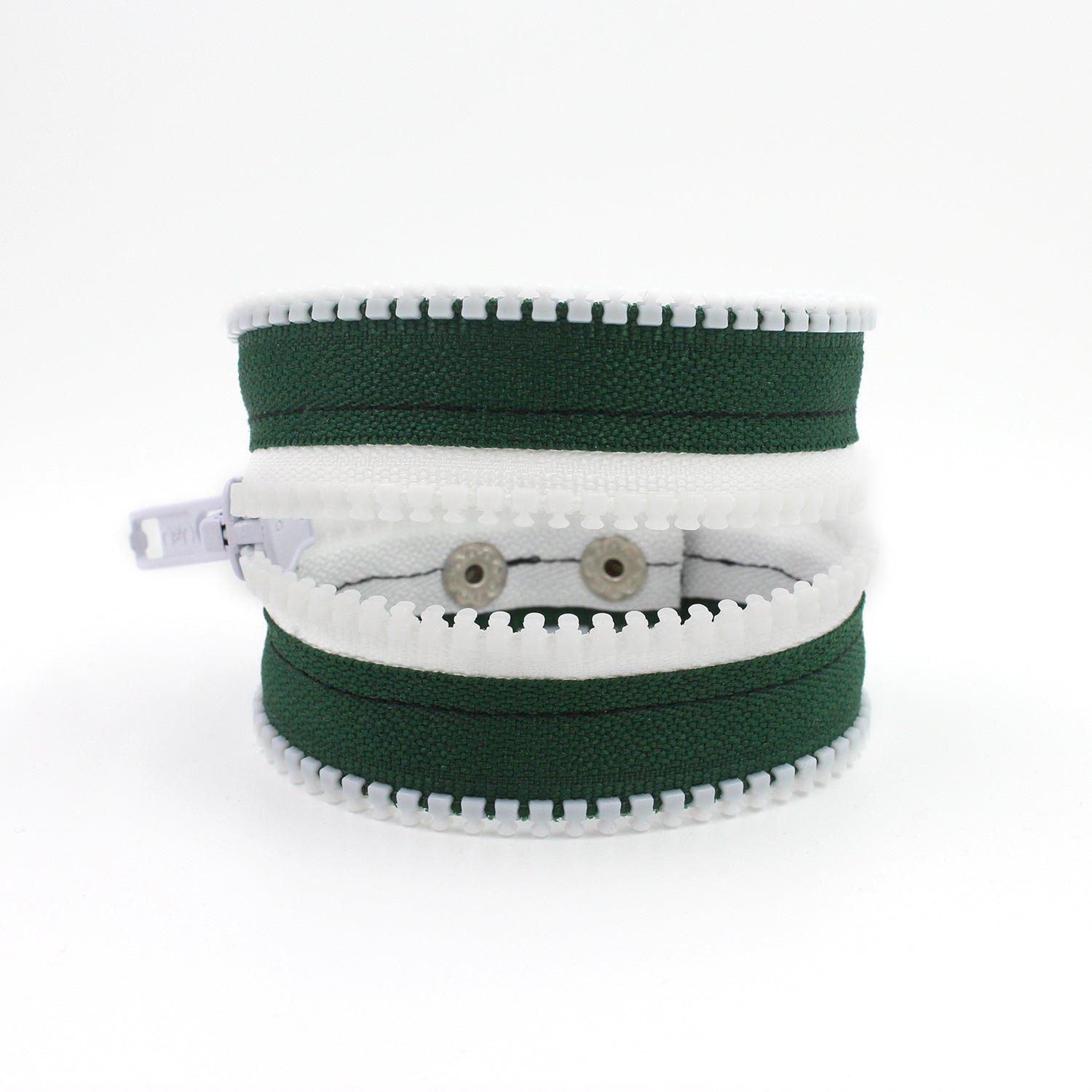 $20.00 USD$0.00 USDAvailable: In stockZipper bracelet in honor of the big game #52 NFC champs! White inner zipper with white teeth. Forest Green outer zipper with white teeth. Black topstitch. Black snaps. White classic zipper pull. Bracelet width: 1.75" Size: Adjustable two ways, 7.25" and 8" (Medium to Large)