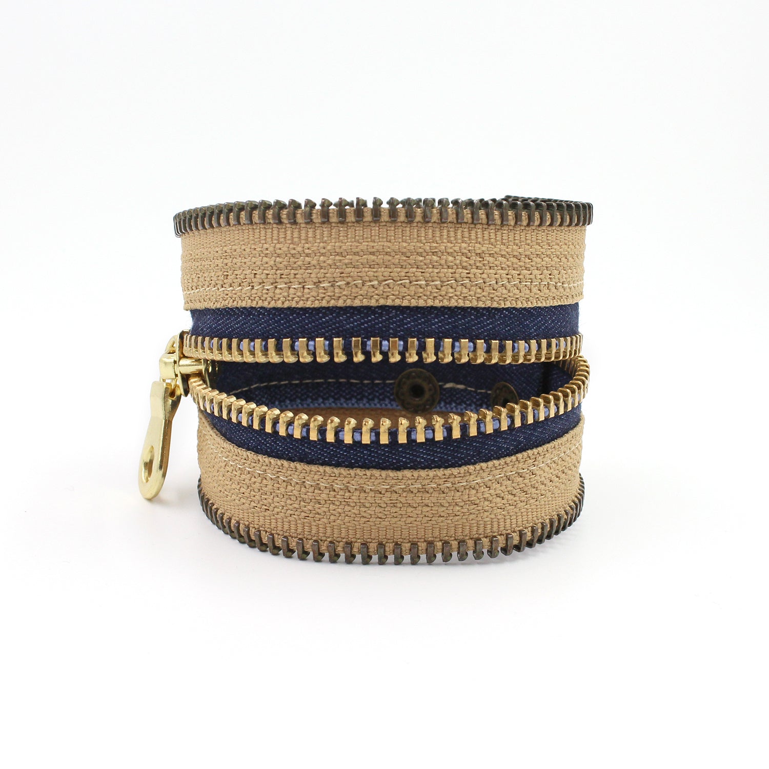 $25.00 USD$0.00 USDAvailable: Out Of Stock :-(Feel the sand in surround your toes and relax zipper bracelet. Looks amazing reversed as well! Blue jean denim inner zipper with brass teeth. Camel outer zipper with antique gold teeth. Beige topstitch. Antique gold snaps. Brass zipper pull. Bracelet width: 2" Size: Adjustable 2 ways - 7.25"...