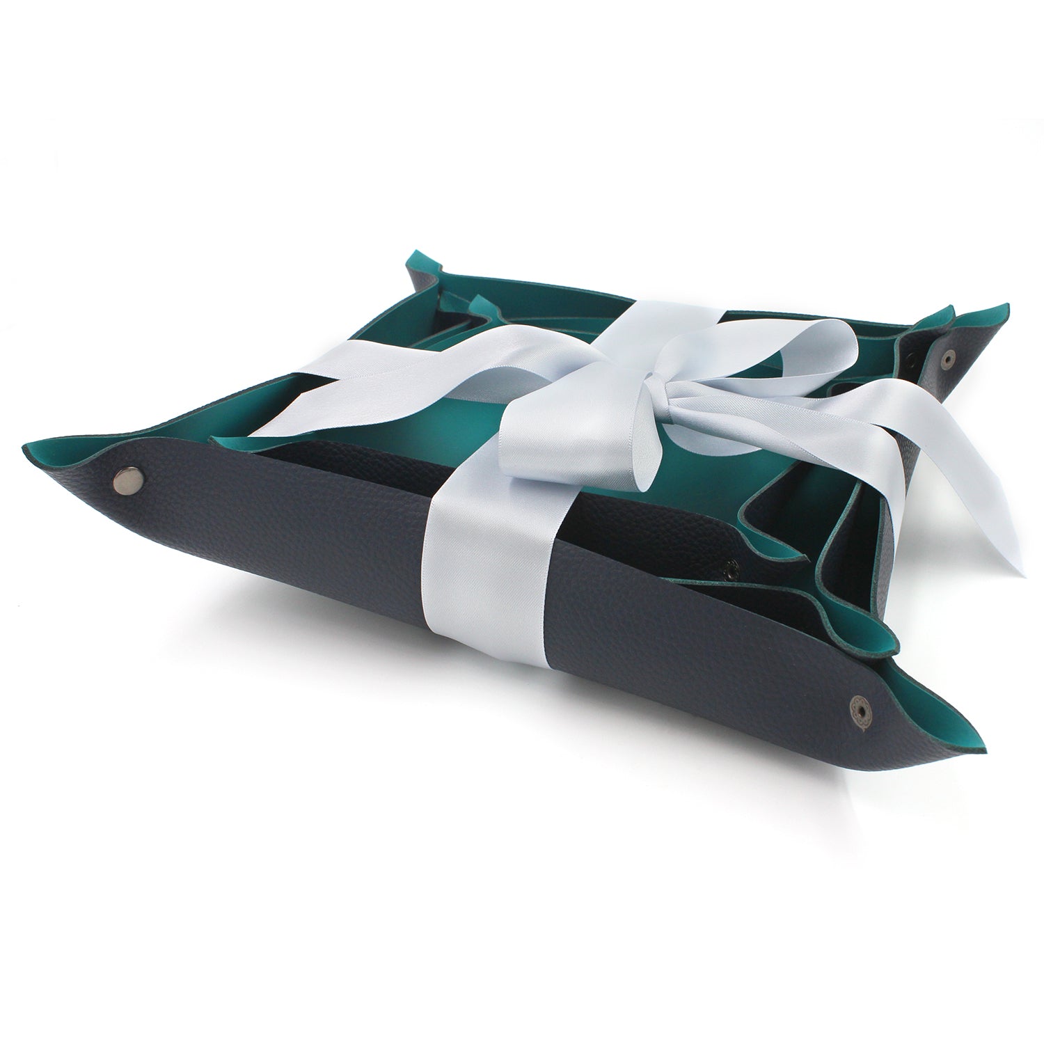 Featuring a small, medium and large matching valet that can be used at home and while traveling. Each piece unsnaps to become flat for easy packing while traveling.