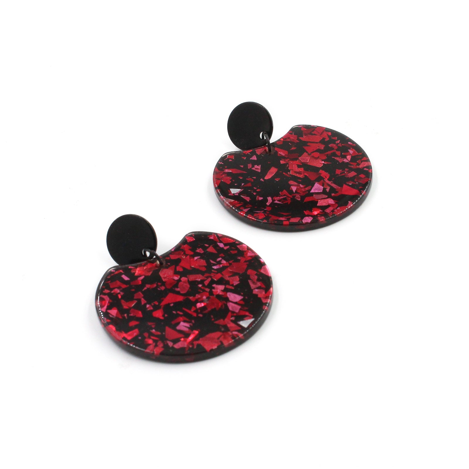 Black & Red Circle Cutout Acrylic Drop Earrings