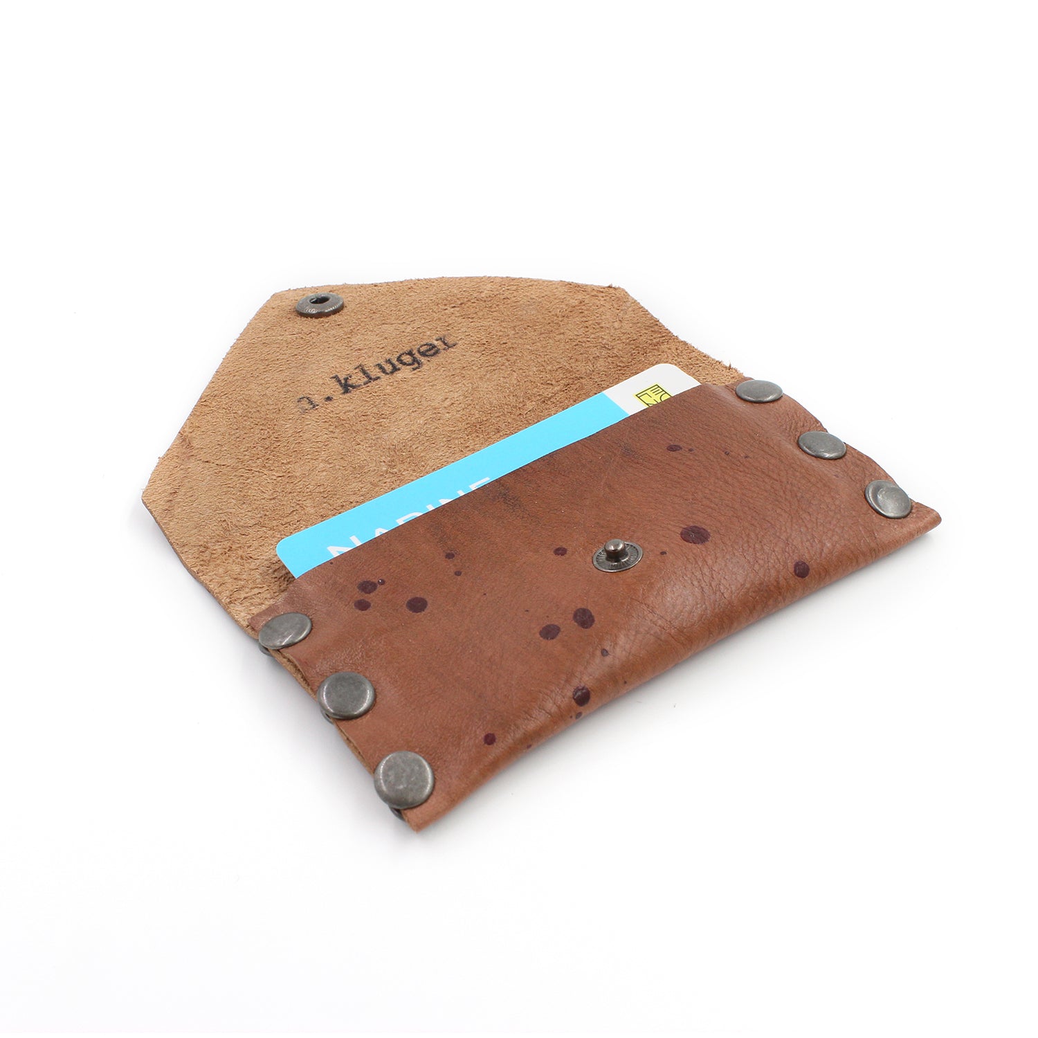 Brown leather simple wallet or card case, hand painted and hand finished. Completely 100% handmade.