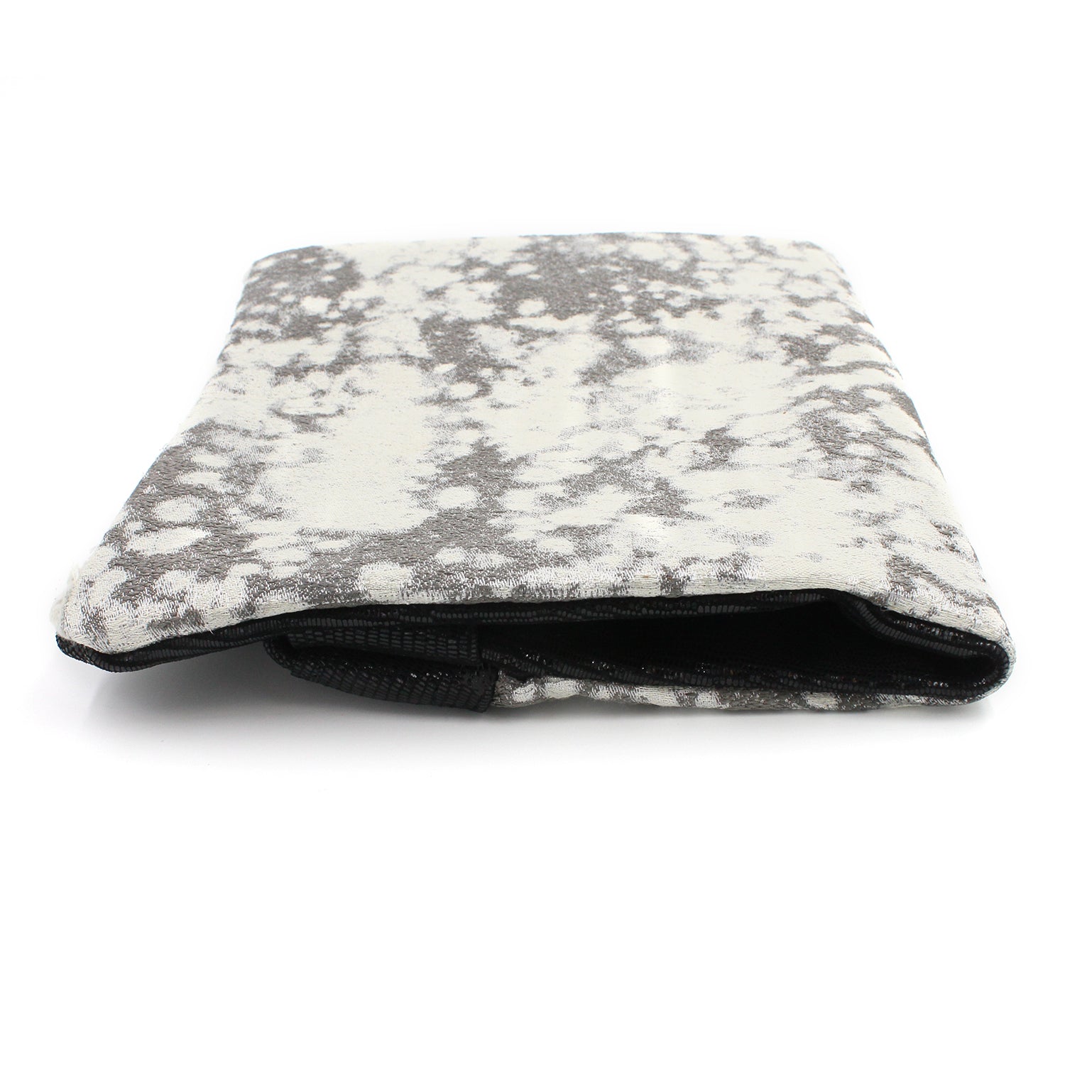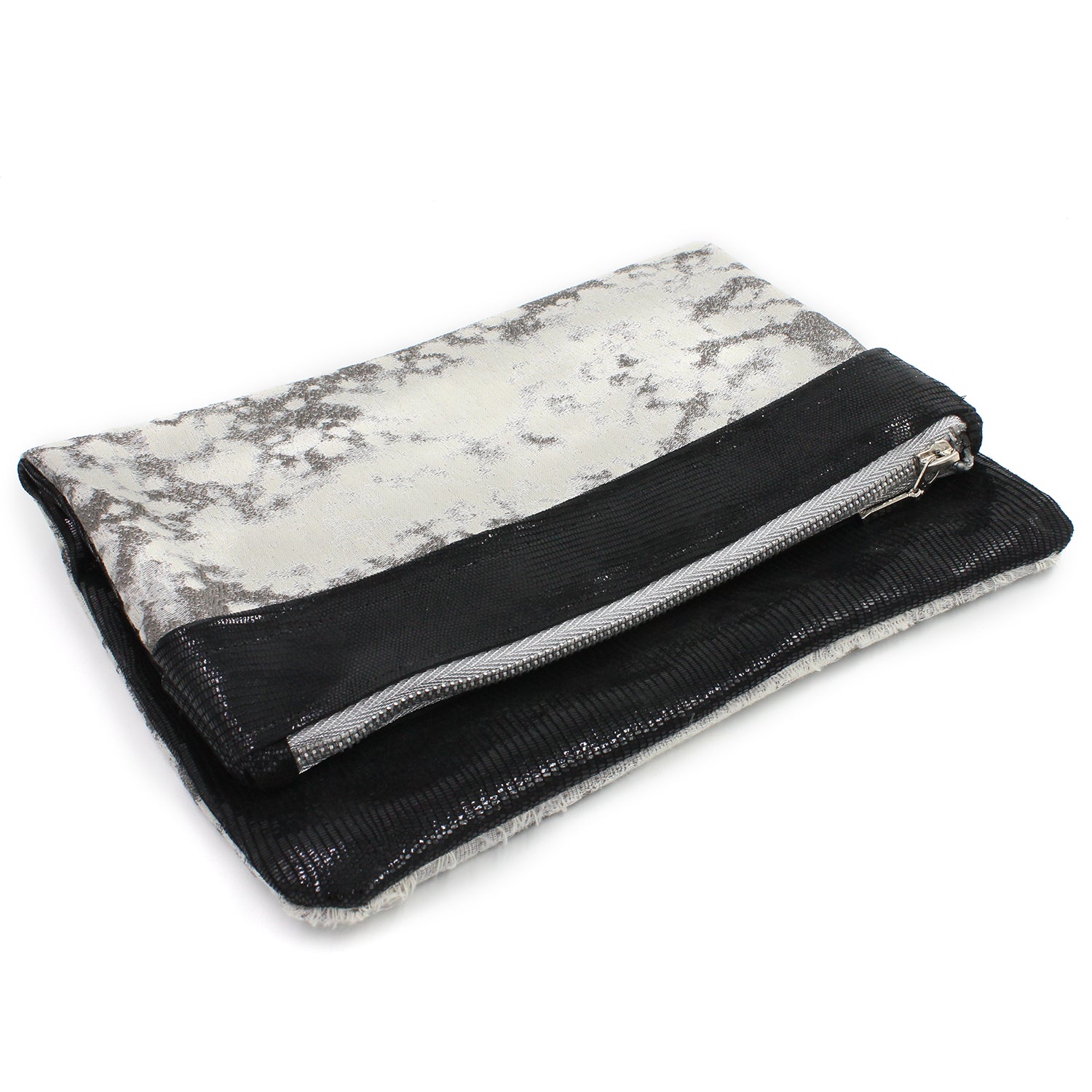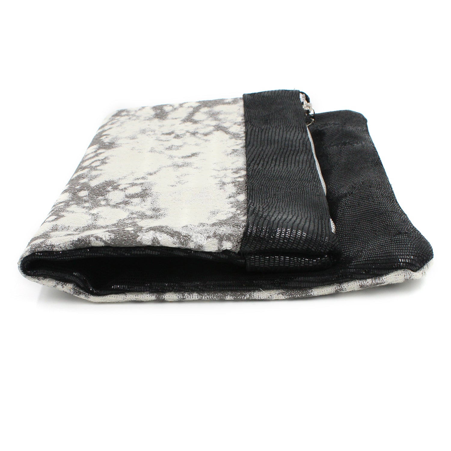 Black & White Metallic Mixed Leather & Fabric Clutch