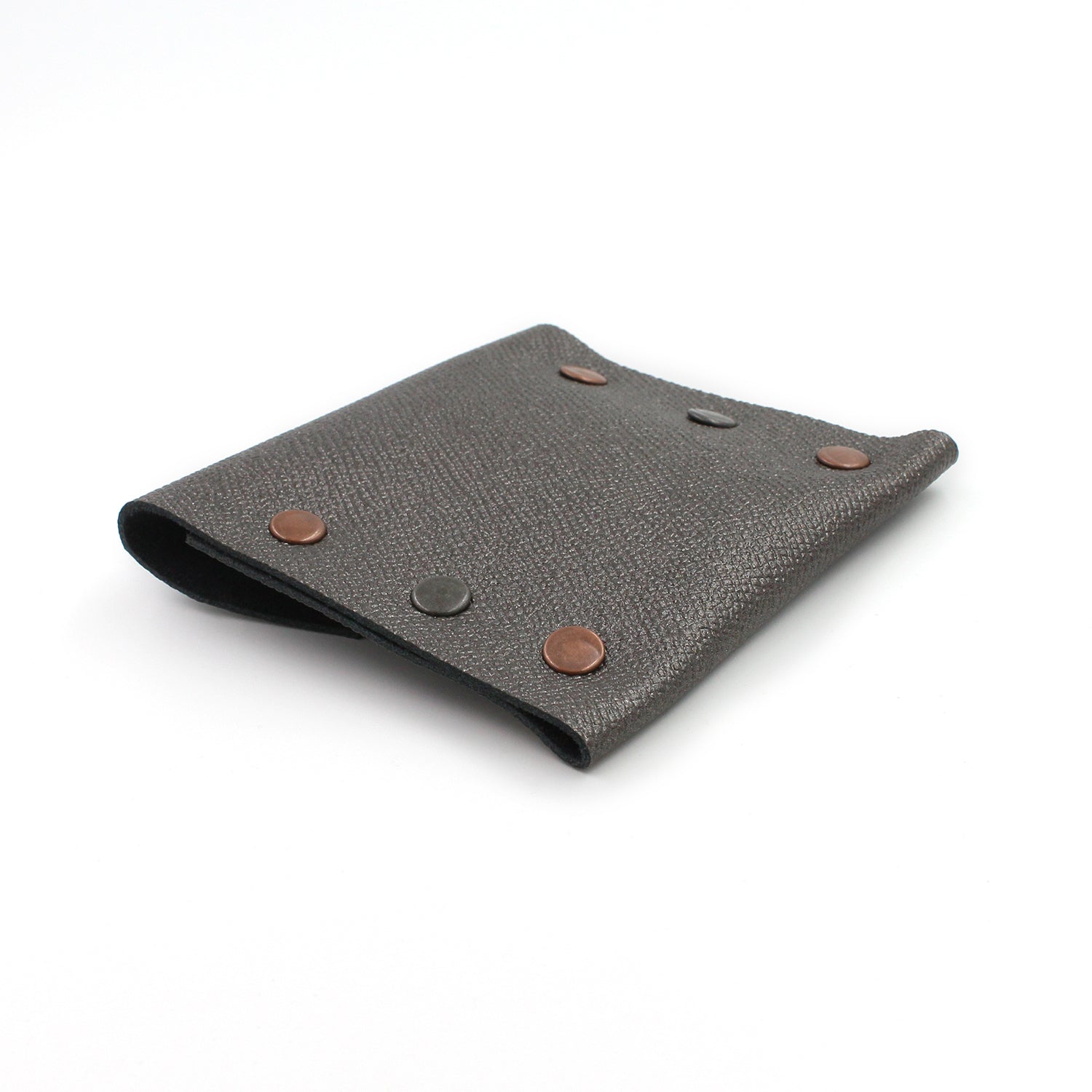 $20.00 USD$0.00 USDAvailable: Out Of Stock :-(All your accessories should be as glamorous as you are! Handmade genuine Italian leather business card/credit card case with rose gold-colored and gunmetal rivets. Gunmetal snap closure. Leather is a shimmering silver, black interior. Each card case is unique. Size: 4"...