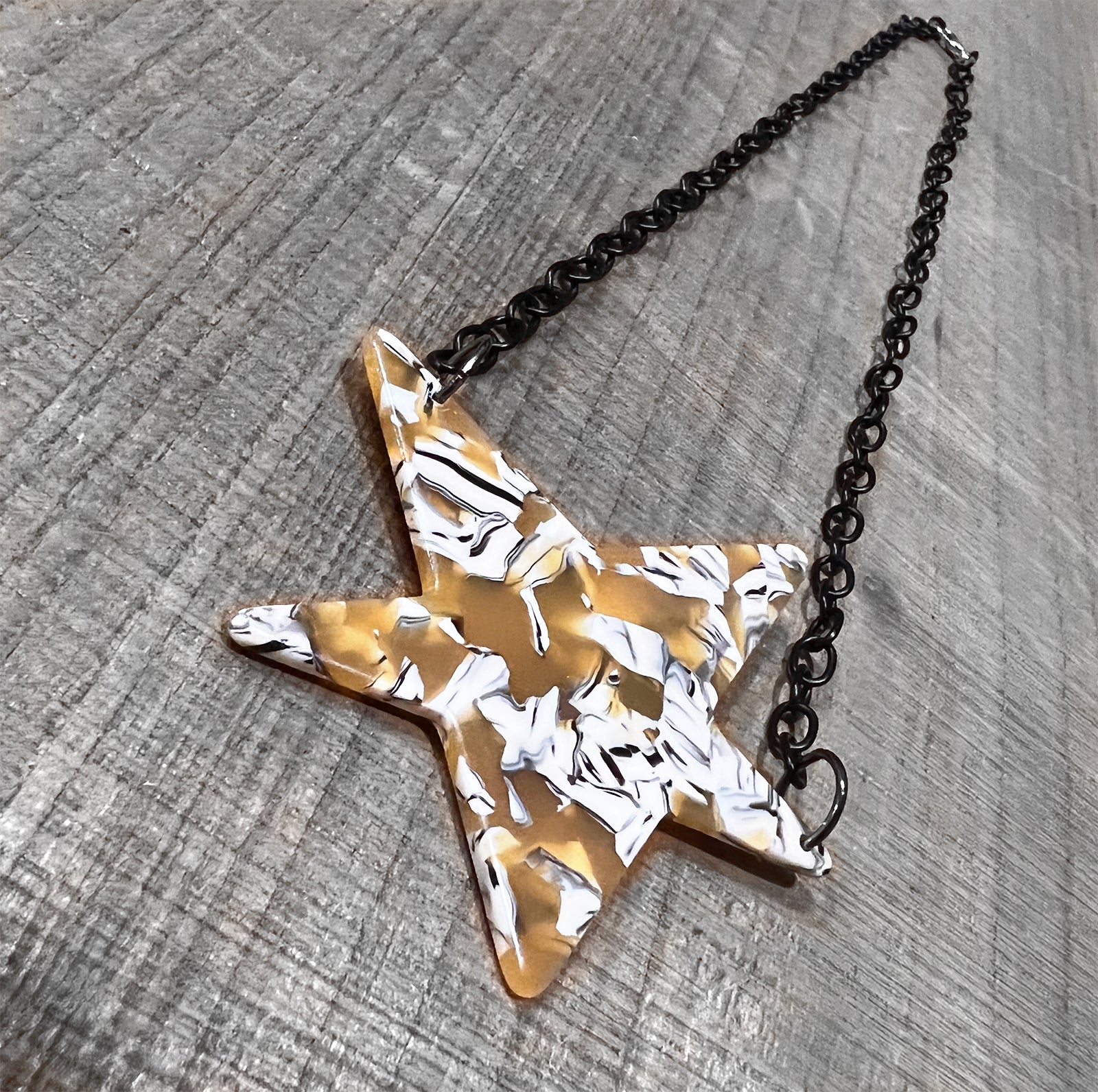 Acrylic Tortoise Shell Star Necklace on Black Chain