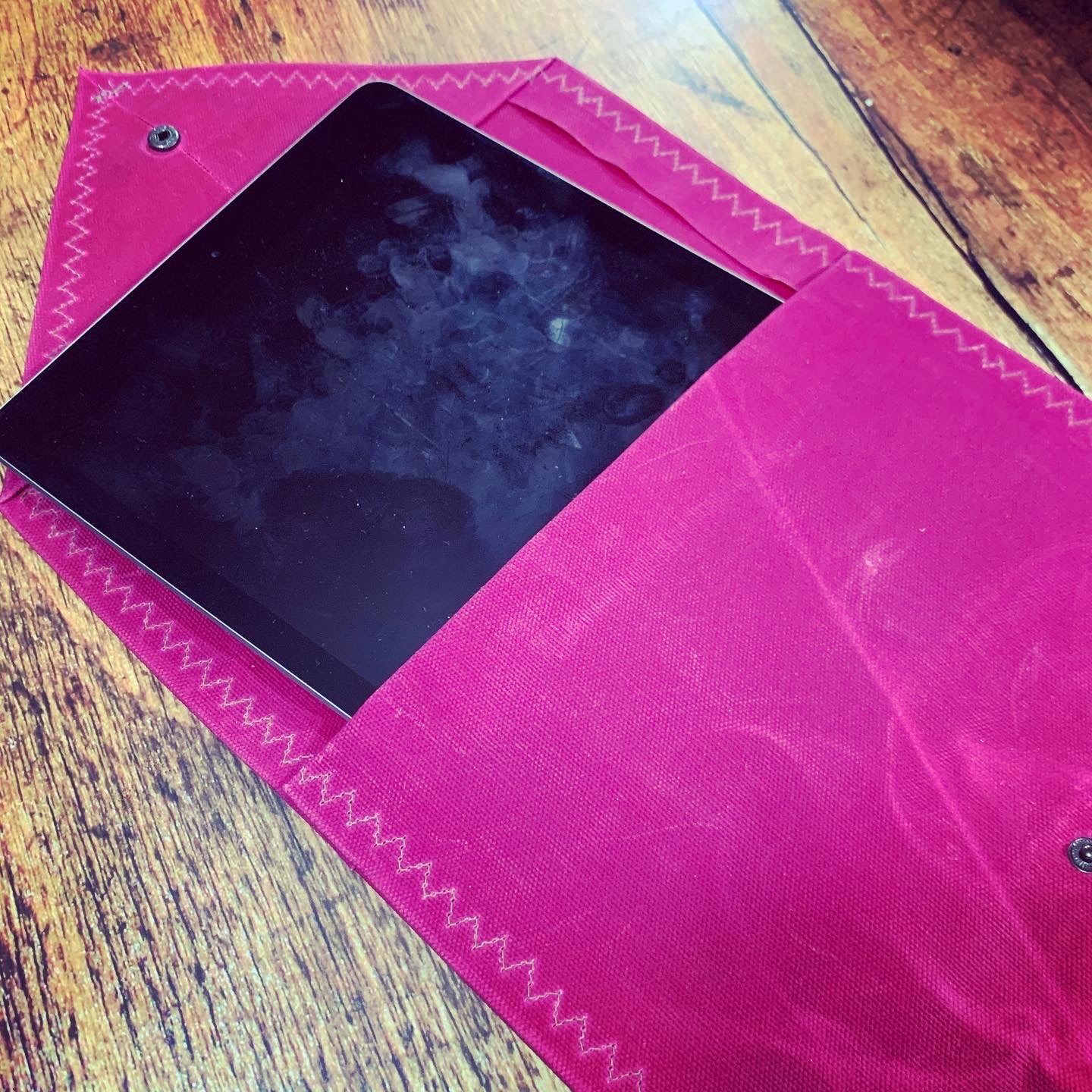 Waxed Canvas iPad Envelope Case/Clutch in Cerise Pink