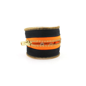 Whether you're looking for some simple Halloween accessories or are simply a Cincinnati Bengals fan, this is the zipper bracelet for you! Bright orange inner zipper with brass teeth.  Black outer zipper with brass teeth. Black topstitch.  Black snaps. Classic zipper pull. Bracelet width:...