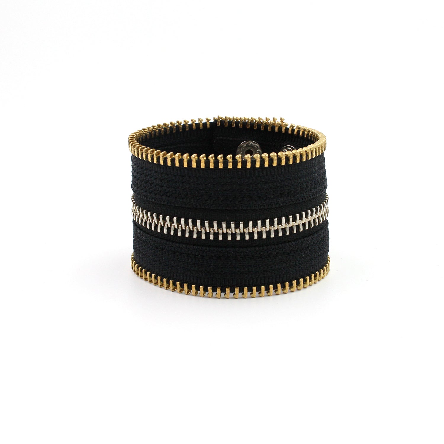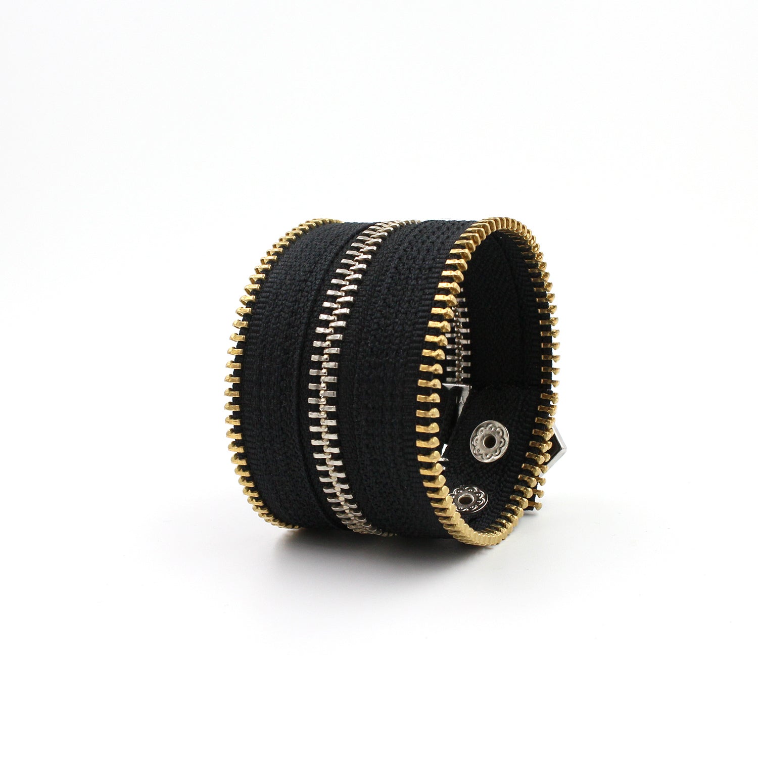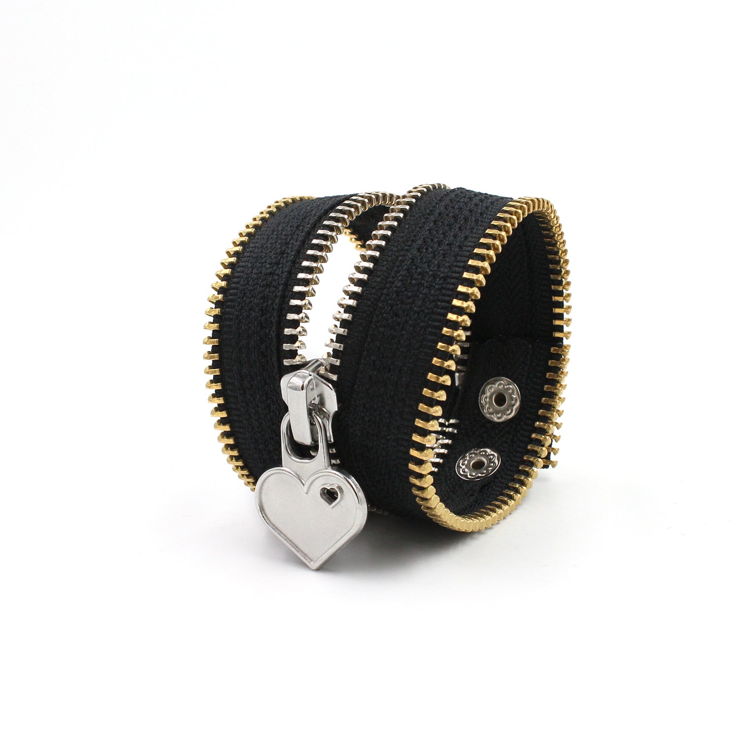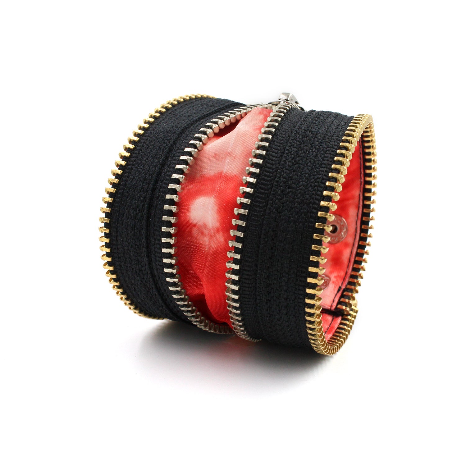$20.00 USD$0.00 USDAvailable: In stockUnderstated love zipper bracelet. Red inner zipper with antique gold teeth. White outer zipper with white teeth. White topstitch. Antique gold snaps. Antique gold zipper pull. Bracelet width: 1.75" Size: Adjustable 2 ways, 6 3/4" and 7.5" (Small to Medium/Large)