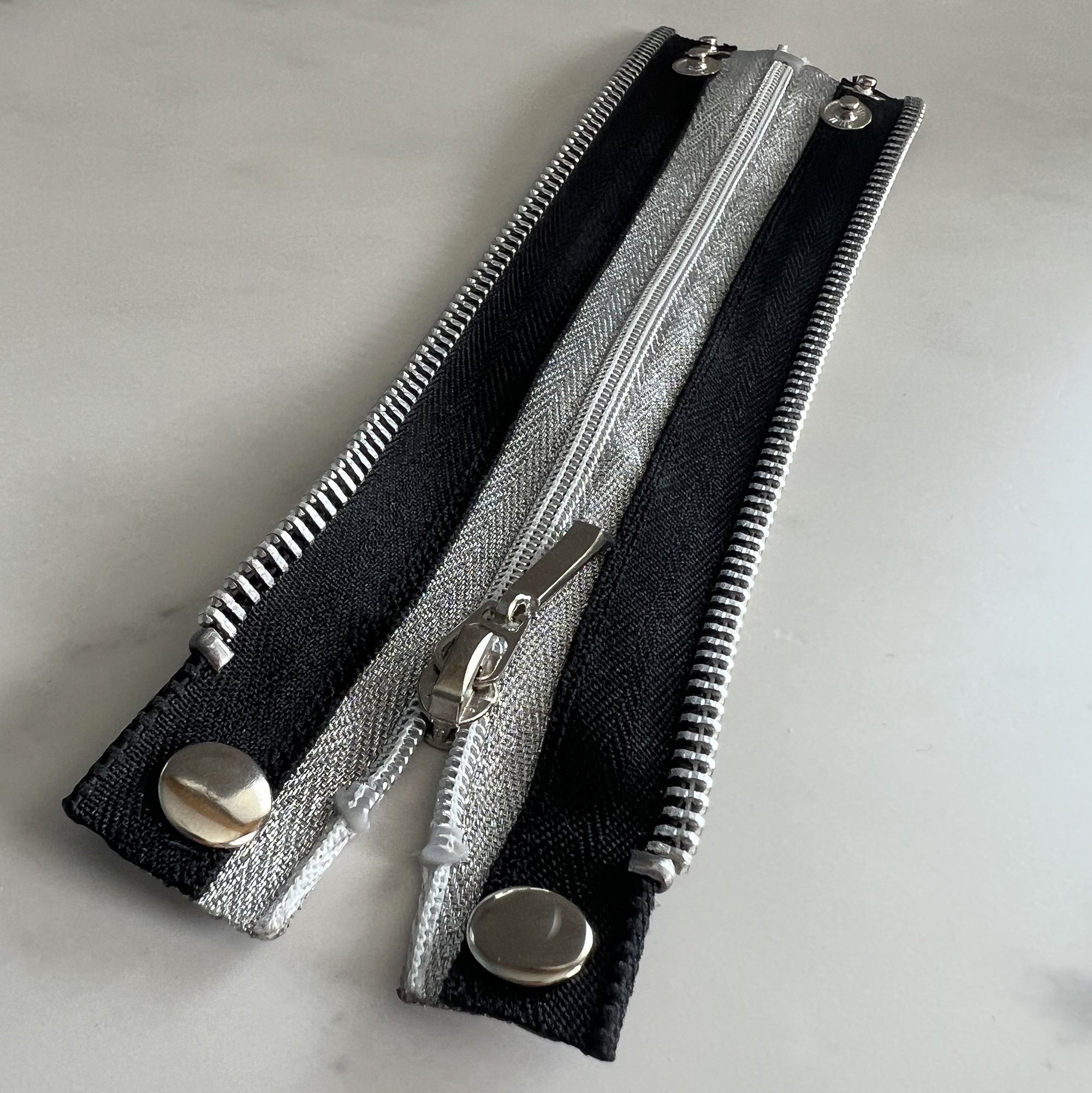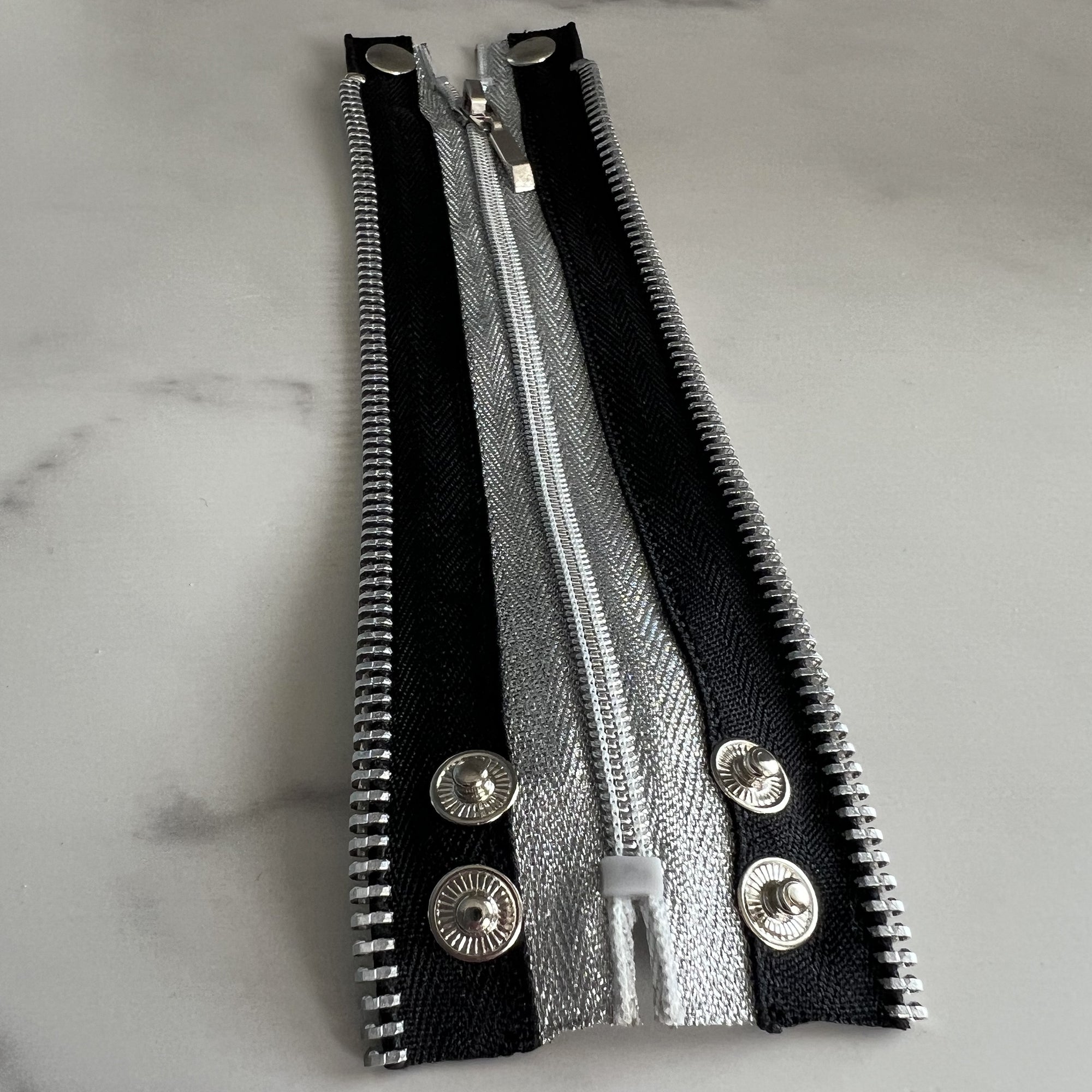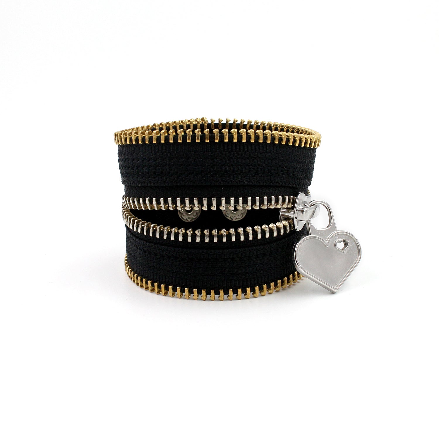 $30.00 USD$0.00 USDAvailable: In stockNot all ♡ zipper bracelets are rainbows and unicorns. Black inner zipper with nickel teeth. Black outer zipper with brass teeth. Black topstitch. Black snaps. Silver heart zipper pull charm. Bracelet width: Just under 1.75" Size: Custom! Choose either small or medium! Small Size: 2-Way Adjustable to 7"Medium Size: 2-Way Adjustable...