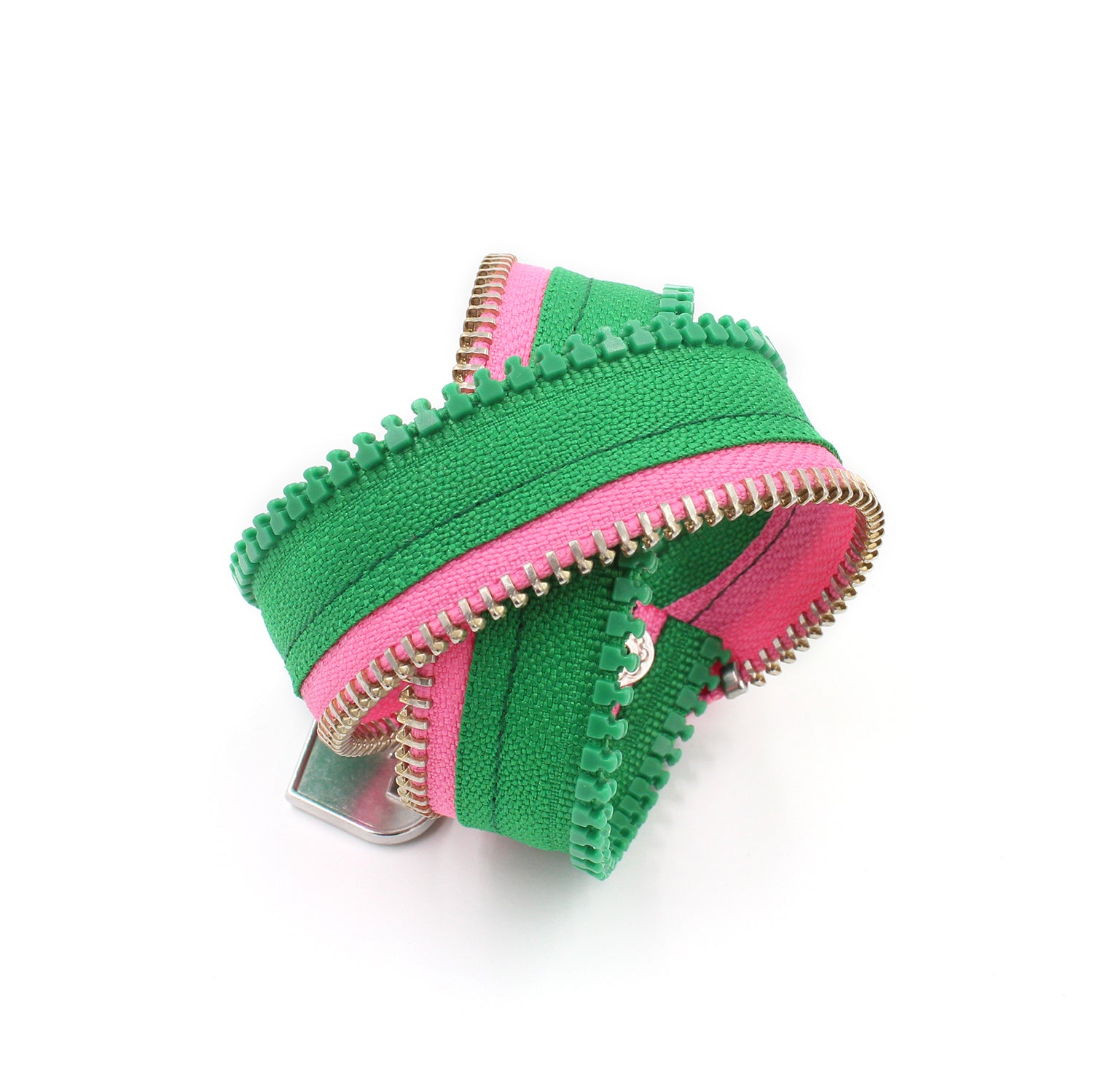 $30.00 USD$0.00 USDAvailable: In stock♡ Spring flowers blooming zipper bracelet. Pink inner zipper with nickel teeth. Kelly green outer zipper with green teeth. Dark green topstitch. Nickel snaps. Silver heart zipper pull charm. Bracelet width: 1.75" Size: Adjustable 2 ways, 6.5" and 7.25" (Small/Medium)