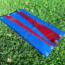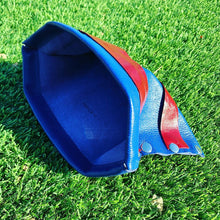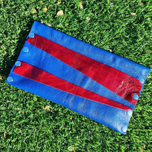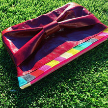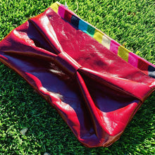 $150.00 USD$0.00 USDAvailable: In stockInevitably, I was going to make a clutch with a bow. Here it is. Handmade gorgeous red leather clutch with bow detail, fully lined with rainbow chevron print canvas fabric. Hot pink zipper closure. Size: 12.5" wide x 8.25" height