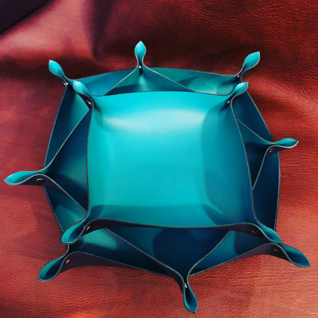 Featuring a small, medium and large matching valet that can be used at home and while traveling. Each piece unsnaps to become flat for easy packing while traveling.