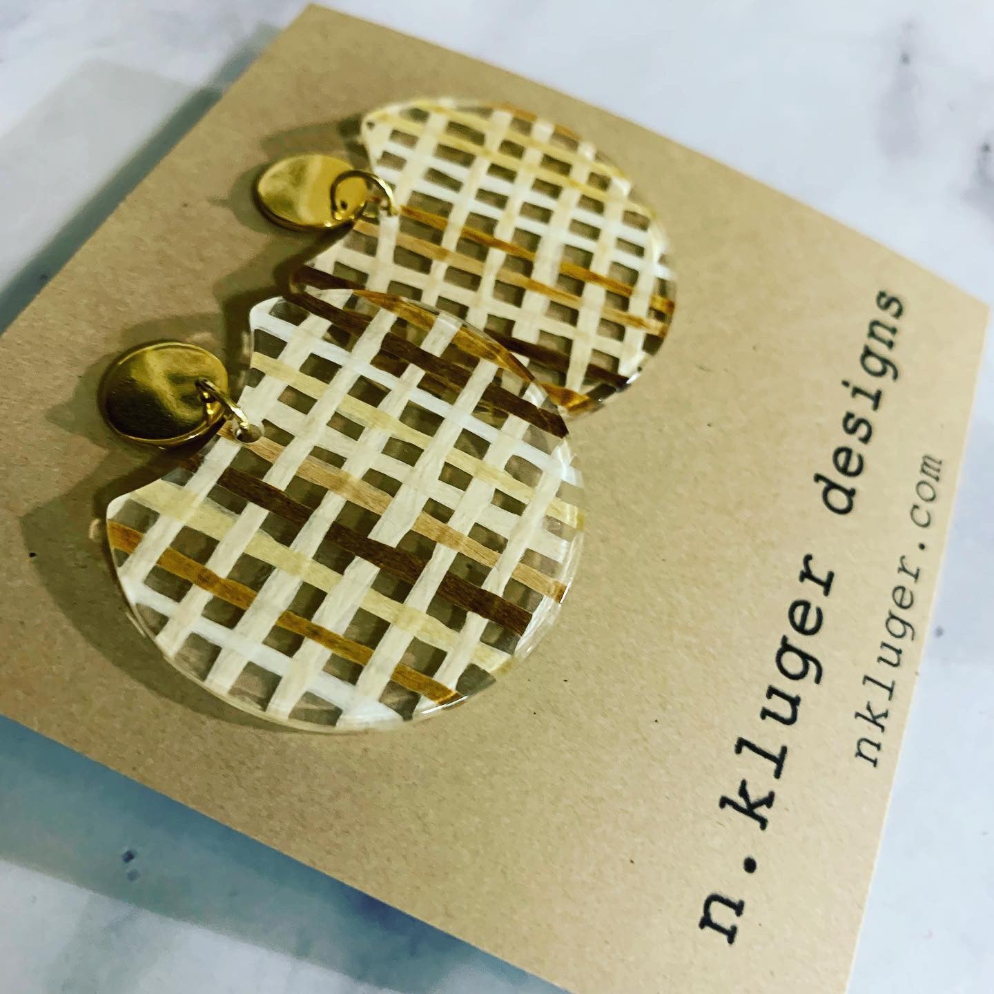 Brown Basketweave Circle Cutout Acrylic Drop Earrings