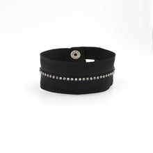 Single no-sew black zipper bracelet with crystal teeth.  Black snaps. Crystal zipper pull with crystal charm.
