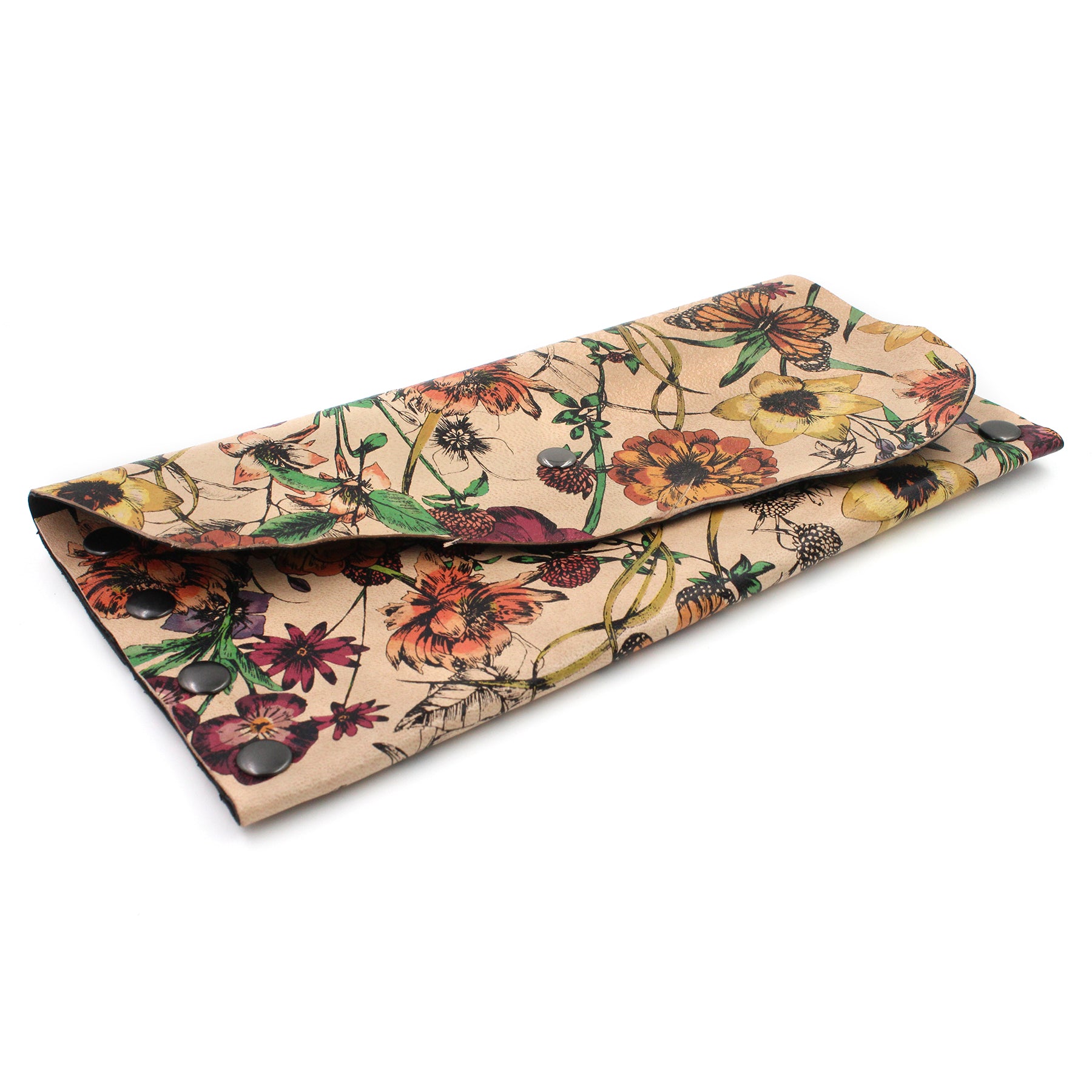 Rustic Floral Leather Lined Clutch with Gunmetal Rivets