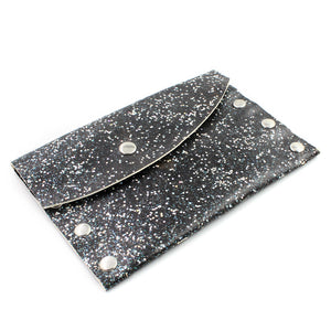 Hand Decorated Black Glitter Leather Card Case / Mini Wallet