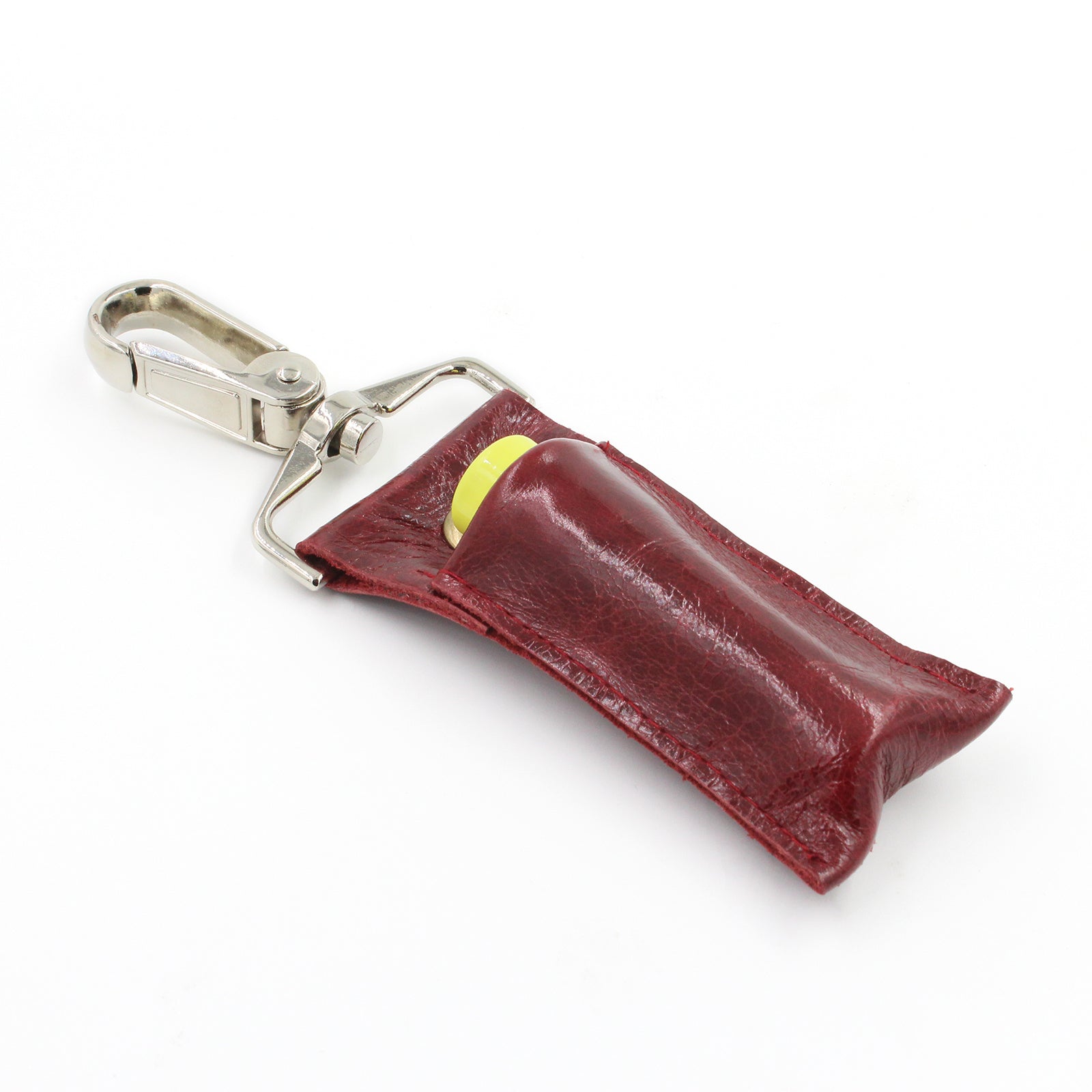 Handmade genuine red leather lip balm holder. Perfect for the standard size lip balm or chapstick. Comes with large stainless steel swivel lobster claw clasp.