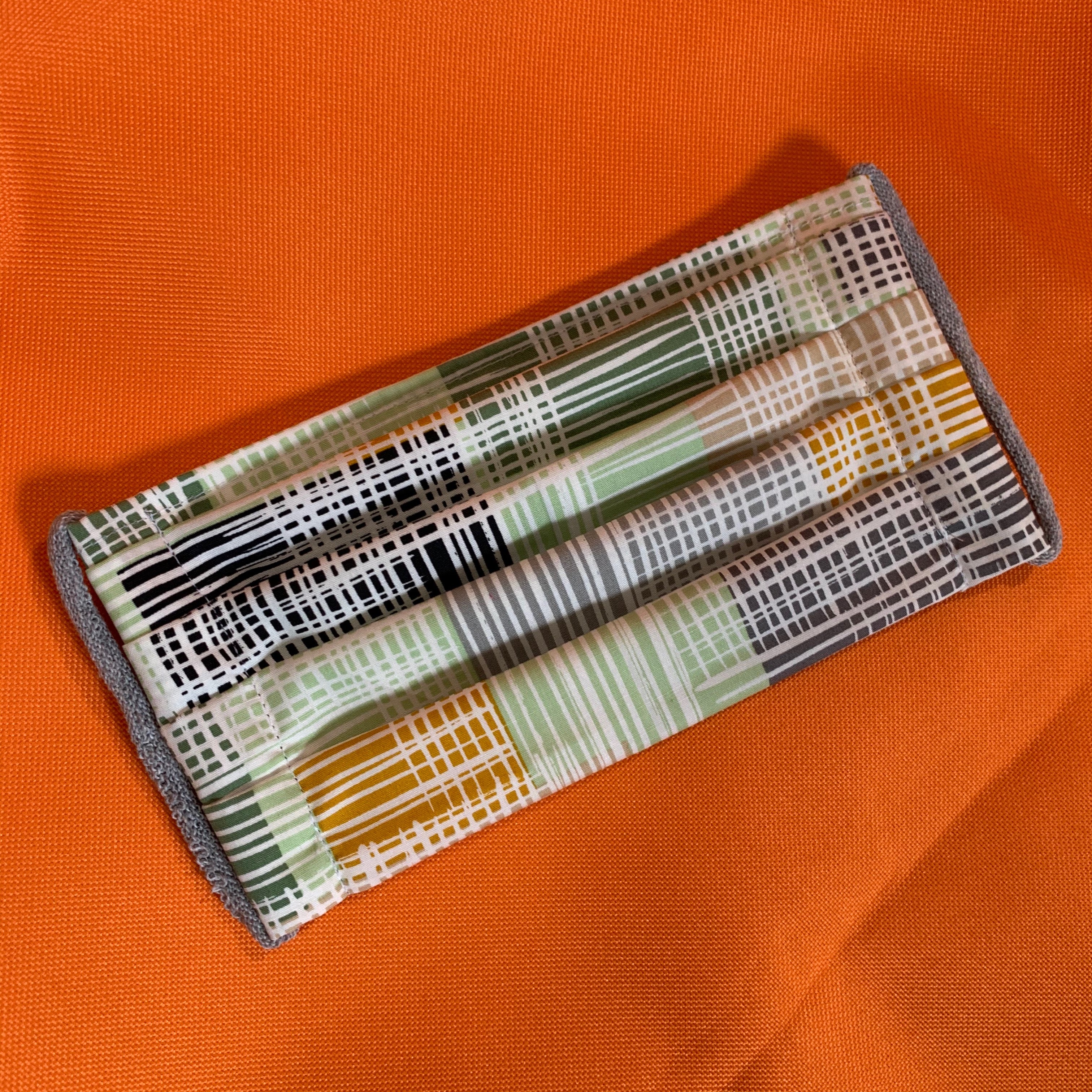 Reusable and washable, 100% breathable cotton face mask in a muted color abstract lines design.  Unisex. These are also reversible. Featuring the most comfortable nylon elastics to wear around your ears. Each mask is pleated and expandable to cover your nose and...