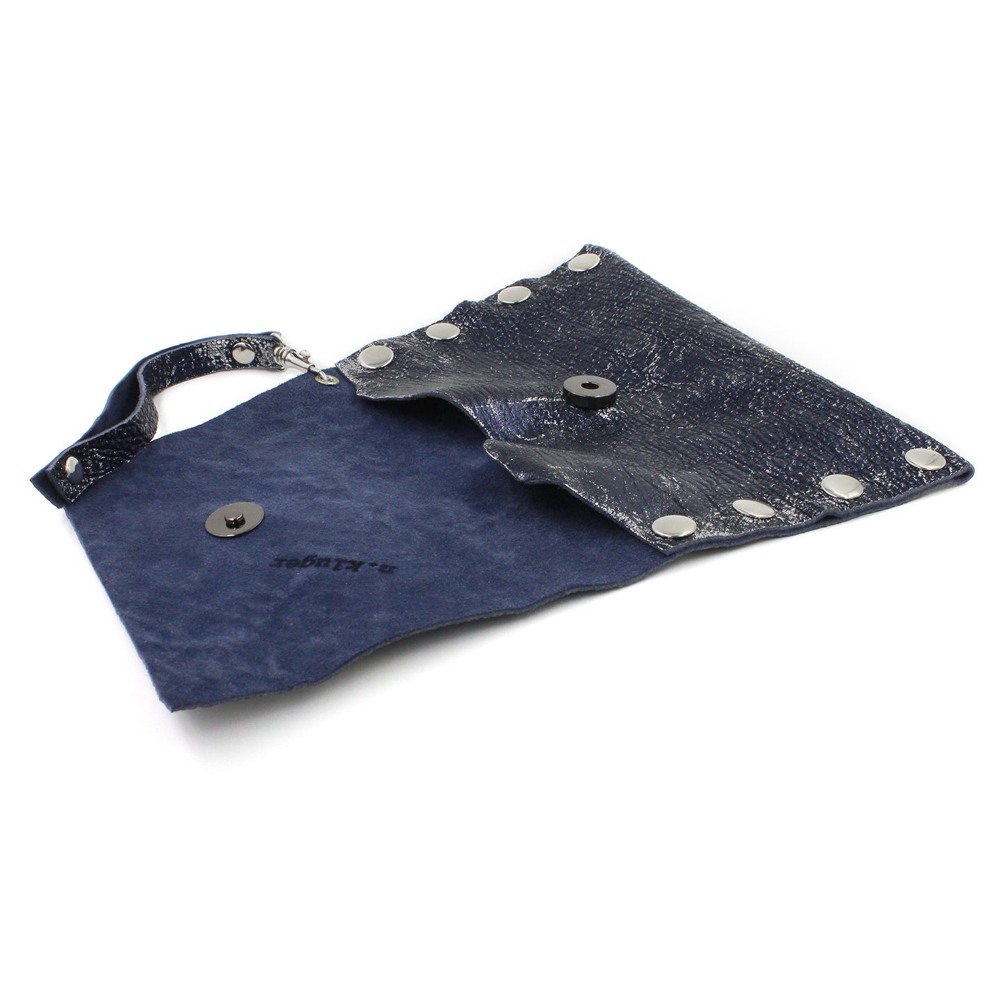 Midnight Blue & Silver Foil Leather Clutch Wristlet