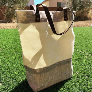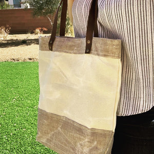 Natural Waxed Canvas & Linen Market Tote Bag