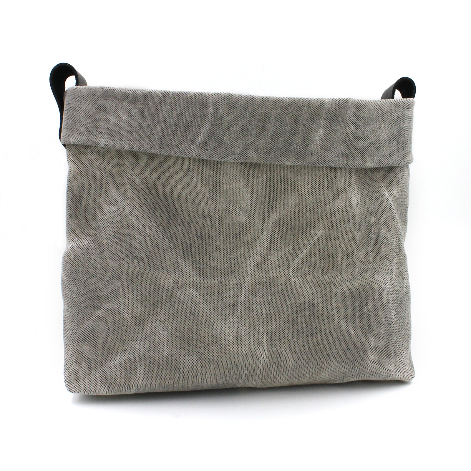 Made from high-quality waxed canvas in salt & pepper color, genuine leather straps in black with gunmetal rivets.