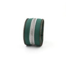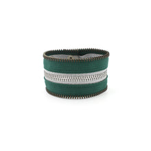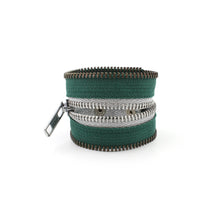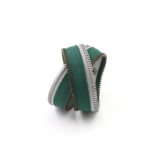 Demonstrating cunning, ambition, creativeness and resourcefulness is the special edition Potter zipper bracelet for the Slytherin house at Hogwarts! Metallic silver inner zipper with silver teeth.  Green outer zipper with antique gold teeth.  Green top stitch. Silver snaps. Wear it 3 ways!  Closed, Open or Twisted!  As an extra...