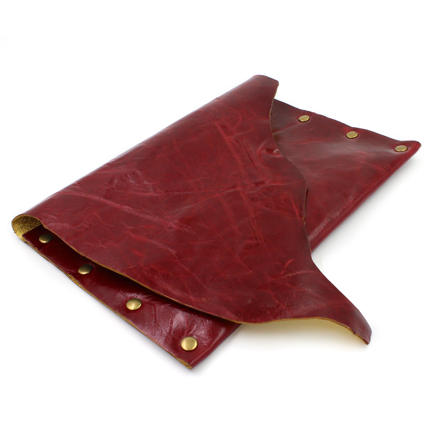 Handmade gorgeous stiff red leather clutch with gold leather interior, oversized flap and antique gold magnetic closure. antique gold rivets.