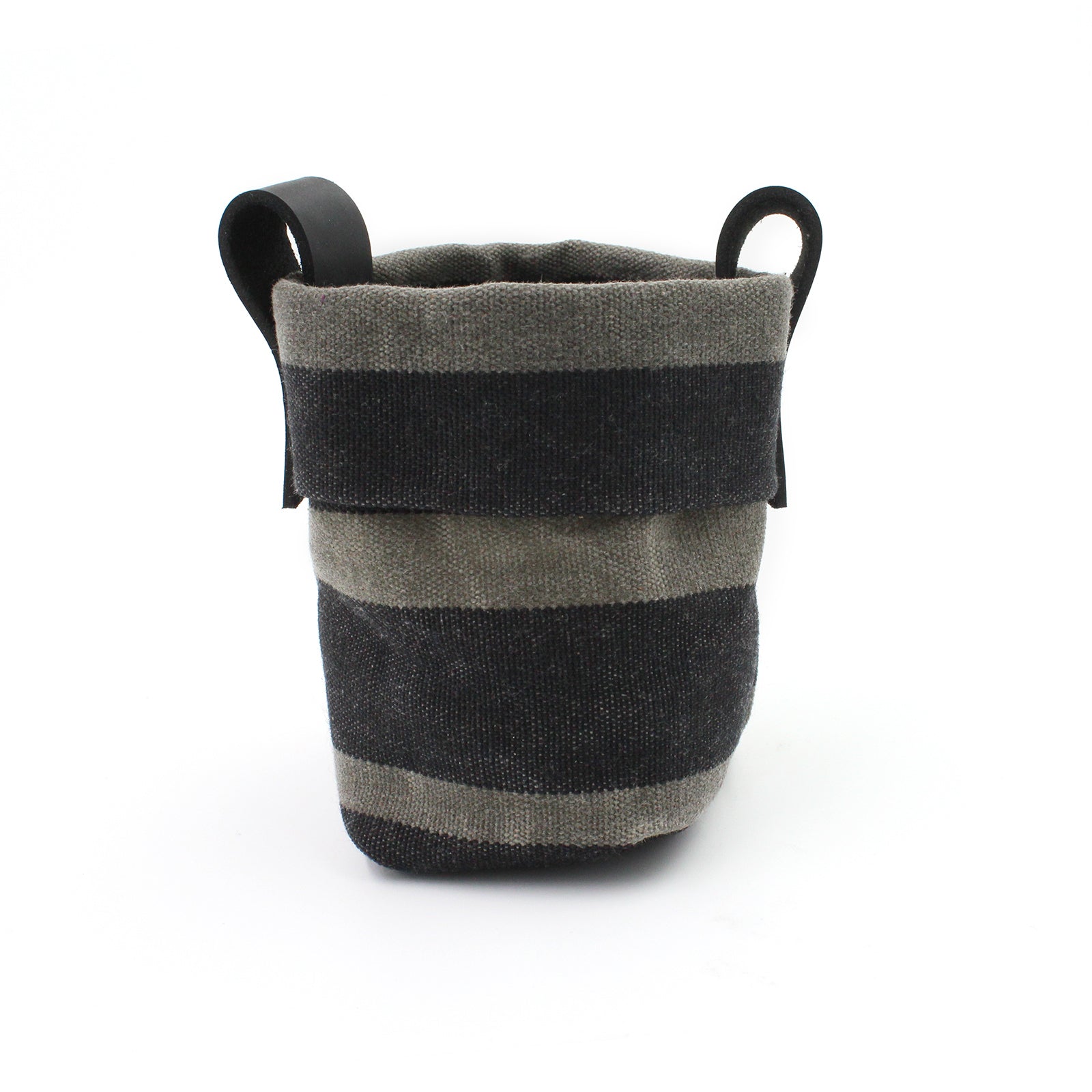 Waxed Canvas Mini "Kiki Pot" Planter in Charcoal Stripes